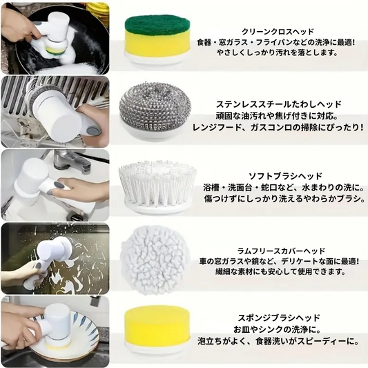 多機能電動クリーニングブラシ|キッチン用品|ハンディ食器洗いブラシ|トイレ・バスルーム・家庭用掃除用具|海外対応
